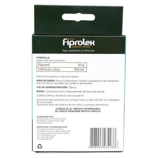 Fiprolex Pipeta - Antipulgas para Perro Raza Chica 1 a 10 kg