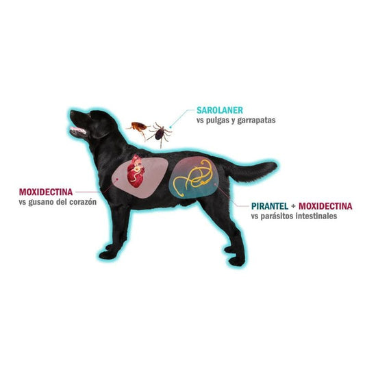 Sarolaner: Acción inmediata contra pulgas y garrapatas.