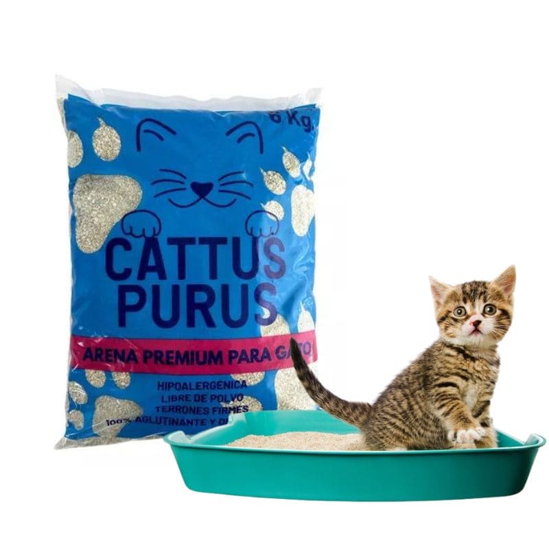 Cattus Purus es una combinación de arena de arcilla y minerales que controlan eficazmente los malos aromas ocasionados por orina y heces.