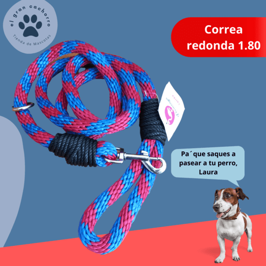 Correa Redonda varios estilos. Convierte las caminatas de tu amigo perro en los momentos más especiales del día con esta clásica y linda correa de forma tubular que combinará perfecto con su collar. Gracias a sus materiales de fabricación, resistirá sin problemas las actividades diarias de tu peludo.