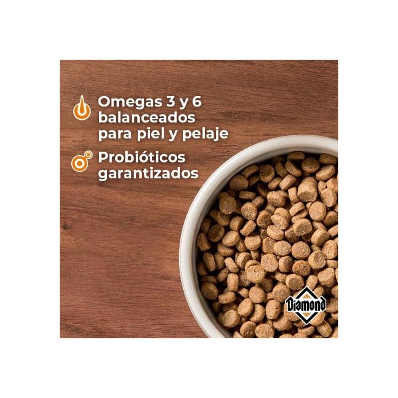 Diamond. Incluye antioxidantes y minerales quelados que ayudan a la salud y bienestar general de tu gato adulto. Óptimo balance de ácidos Omega 3 y 6 para un hermoso pelo y una piel saludable.