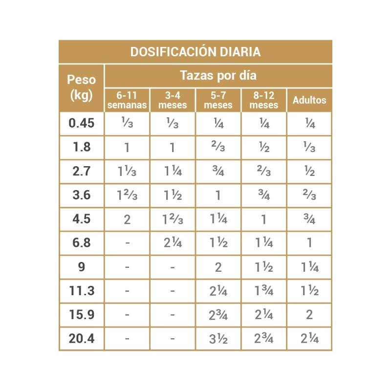 • Alimento fácil de masticar. • El calcio y el fósforo permitirán que mantenga unos huesos y articulaciones fuertes. • Mantienen a nuestro perro en su peso adecuado, con una alimentación balanceada. • Permite un buen desarrollo del cerebro y la visión gracias al DHA.