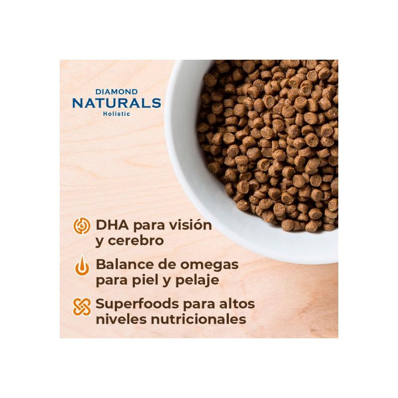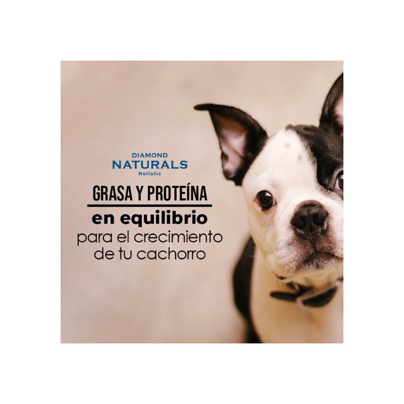 Diamond Naturals. Alimento formulado para que nuestros cachorros de raza pequeña puedan ingerirlos fácilmente y reciban todos los nutrientes necesarios para un sano desarrollo.