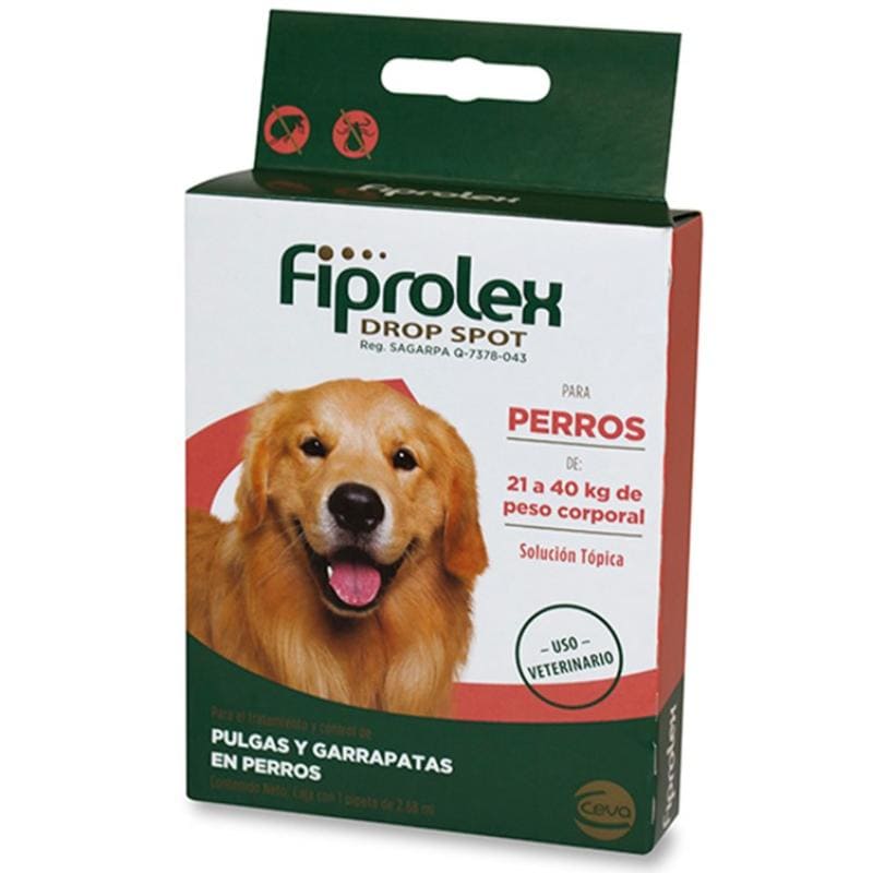 Fiprolex. Eficaz pipeta que te ayudará a combatir y contrarrestar pulgas y garrapatas de tu amigo perro de 21 Kg a 40 Kg.