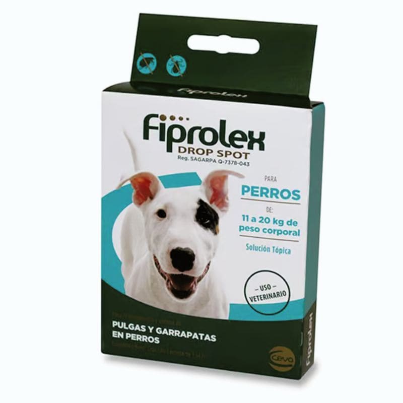 Fiprolex. Eficaz pipeta que te ayudará a combatir y contrarrestar pulgas y garrapatas de tu perro de 11 Kg a 20 Kg.