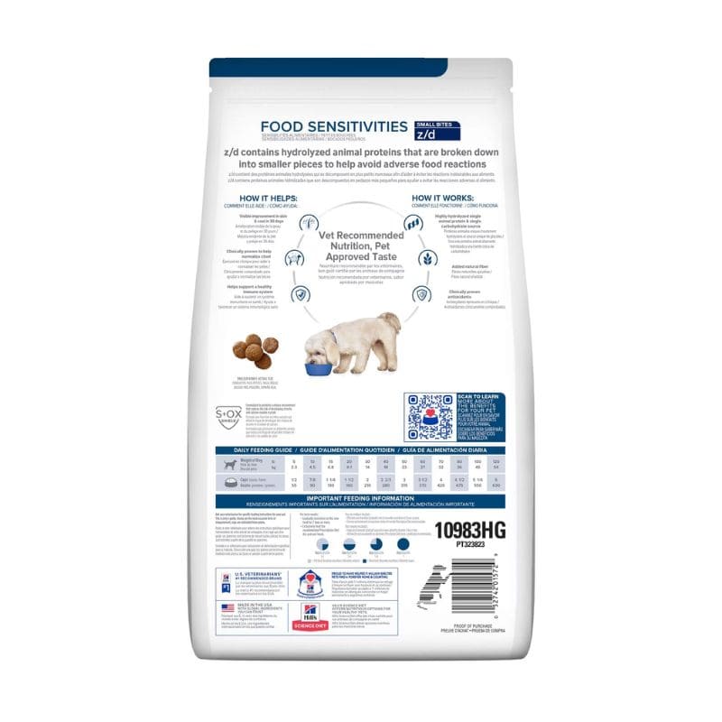 La sensibilidad e intolerancia a los alimentos son problemas potencialmente graves que pueden provocar irritaciones en la piel, el pelaje y las orejas o incluso molestias gastrointestinales. Perros que tienen reacciones adversas a los alimentos debido a una alergia a los alimentos (normalmente a una proteína del alimento) o intolerancia , se benefician de un alimento diseñado para las sensibilidades alimentarias. Los nutricionistas y veterinarios de Hill's desarrollaron la nutrición clínica Prescription Diet z/d Small Bites especialmente formulada para apoyar las sensibilidades alimentarias de los perros. De hecho, z/d Small Bites es una nutrición clínicamente probada para ayudar a evitar reacciones adversas a los alimentos.