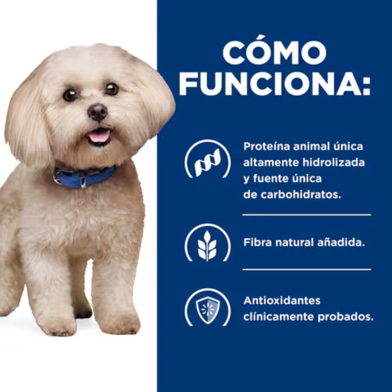 Con proteína hidrolizada para ayudar a evitar reacciones alimentarias adversas en perros y promueve una piel saludable
