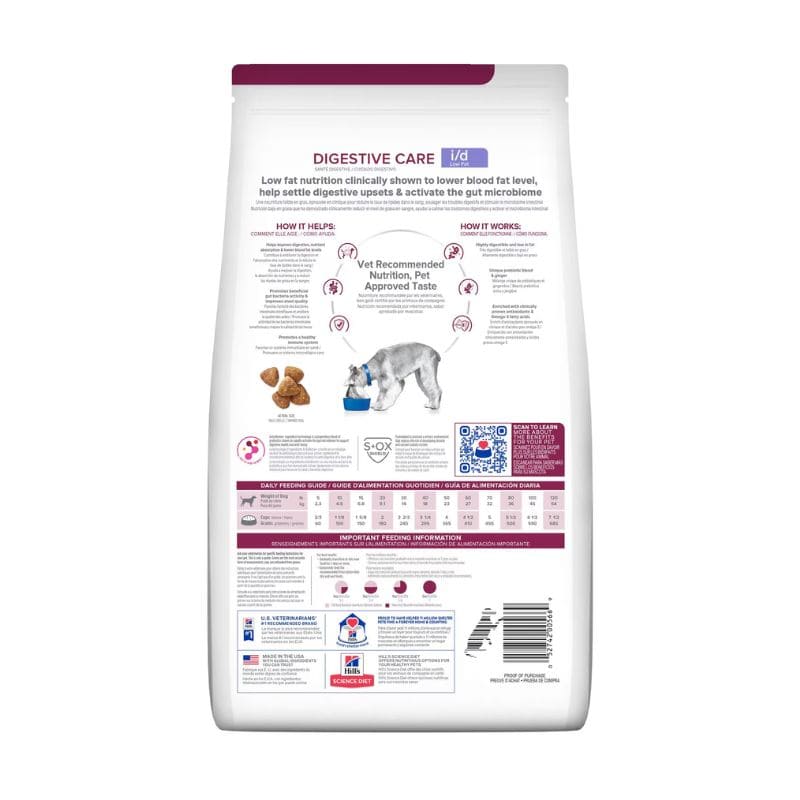 Hill's Prescription Diet i/d Low Fat Dry Dog Food proporciona toda la nutrición que su perro necesita. Consulte a su veterinario para obtener más información sobre cómo nuestros alimentos Hill's Prescription Diet pueden ayudar a su perro a seguir disfrutando de una vida feliz y activa.