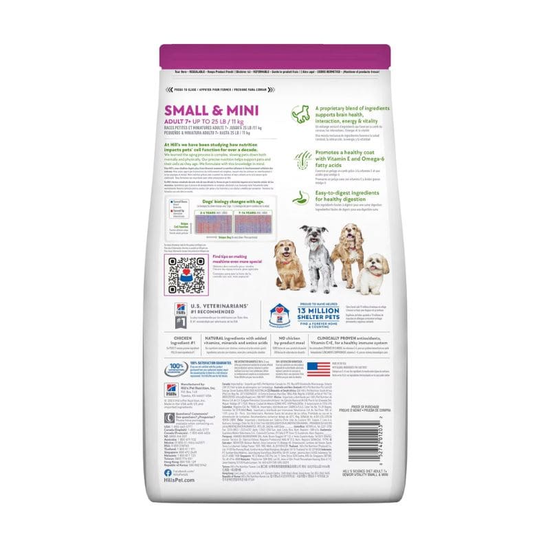 Hill's Science Diet Senior Vitality Small. El alimento para perros Mini proporciona una nutrición equilibrada con precisión para mejorar la capacidad diaria de levantarse y andar en su perro Adulto de 7 años o más.
