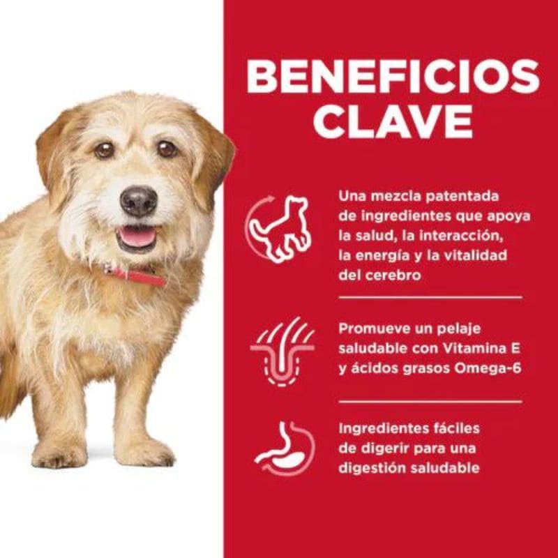 - Hill's Science Diet Senior Vitality Small promueve un pelaje saludable con vitamina E y ácidos grasos Omega-6
