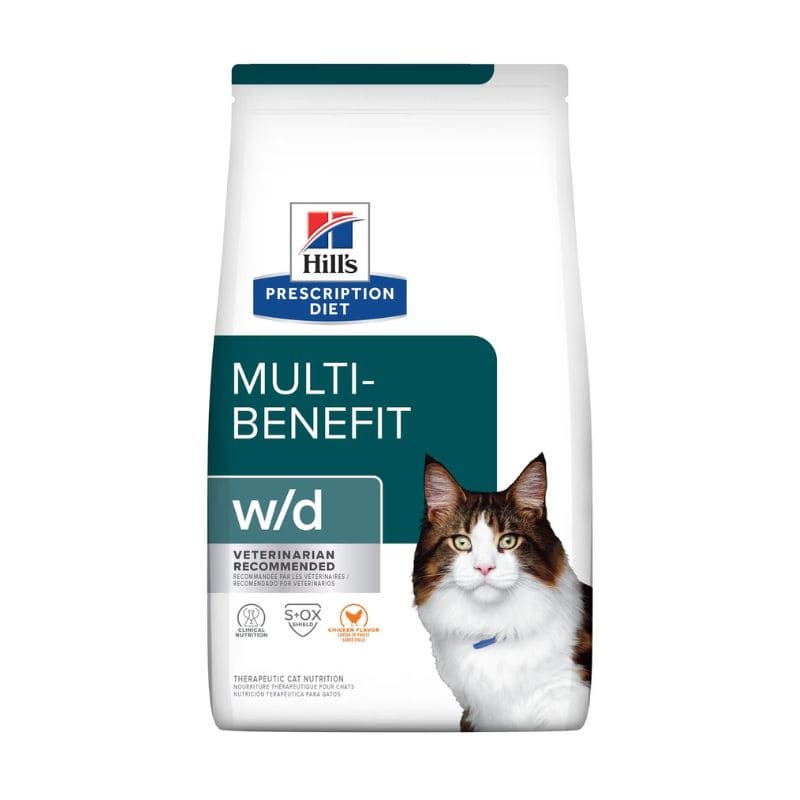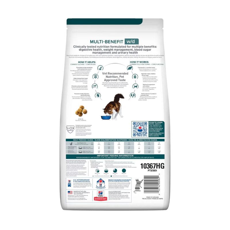 Hill's Prescription Diet w/d Multi-Benefit es un alimento seco completo y equilibrado que aporta toda la nutrición que tu gato necesita. Consulte a su veterinario para obtener más información sobre cómo nuestros alimentos Prescription Diet pueden ayudar a su gato a seguir disfrutando de una vida feliz y activa.
