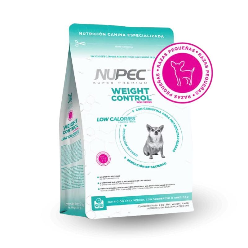 Nupec. Estamos conscientes de que el sobrepeso es un problema de salud que afecta la calidad de vida y reduce la longevidad de tu mascota de raza pequeña. Por ello hemos formulado una nutrición especializada que ayuda a reducir el peso, manteniendo una masa muscular óptima, sin afectar el apetito de tu canino. Consulta a tu médico veterinario para determinar la dieta adecuada.