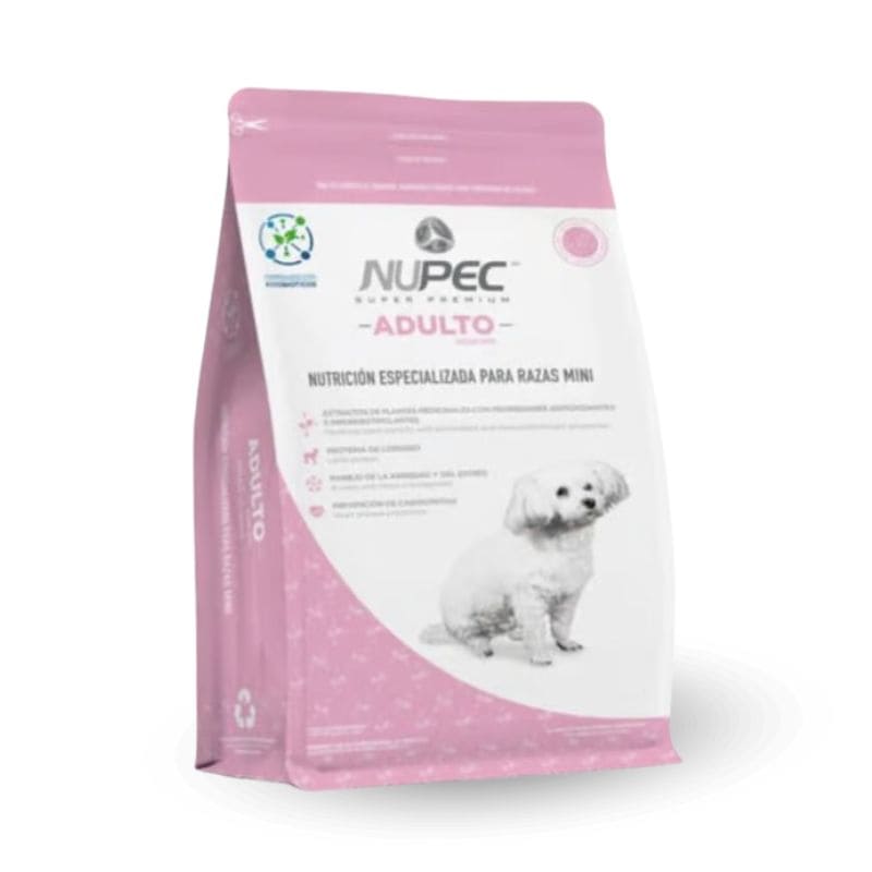 Nupec. Alimento balanceado especialmente diseñado para el mantenimiento de perros razas mini adulto, perros de hasta 5Kg. De peso. Manténganse en un lugar seco y fresco.