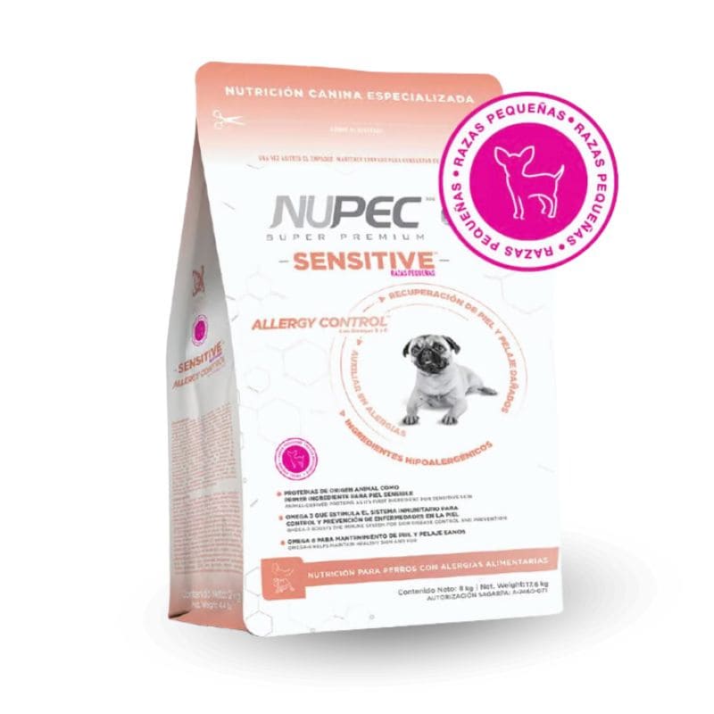 Nupec. Estamos conscientes de la sensibilidad que los caninos pueden llegar a desarrollar hacia ciertos alimentos. Por ello hemos desarrollado una fórmula especializada con ingredientes hipoalergénicos auxiliares en el tratamiento de alergias alimentarias. Consulta a tu médico veterinario para determinar la dieta adecuada.