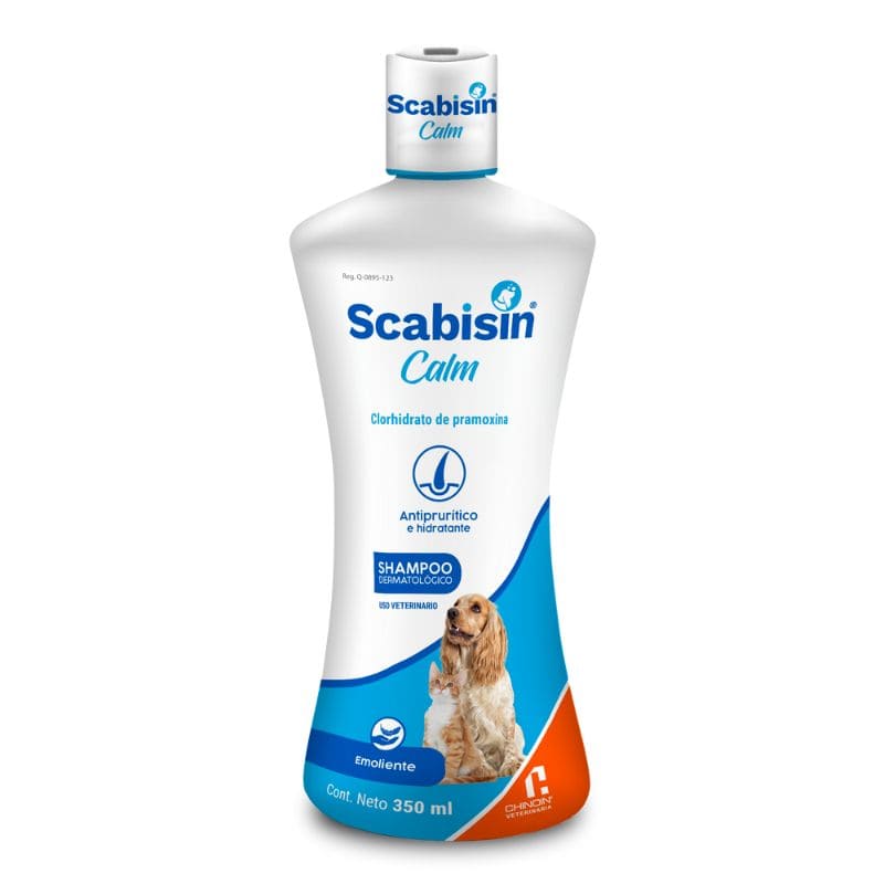 SCABISIN CALM® está indicado como adyuvante en el control de afecciones de la piel que causan prurito como: alergias, picaduras de insectos, quemaduras leves, rasguños menores, dermatitis causadas por sustancias irritantes o plantas, dermatosis no supurativas. SCABISIN CALM® proporciona un efecto calmante, tiene acción limpiadora, emoliente y humectante que reduce la resequedad y la descamación, por lo que también es útil en atopia canina.