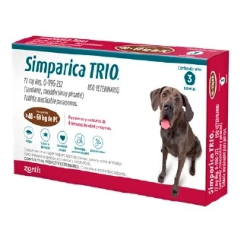 Simparica Trio Masticable Desparasitante Externo e Interno para Perro 40-60 kg, 3 Tabletas