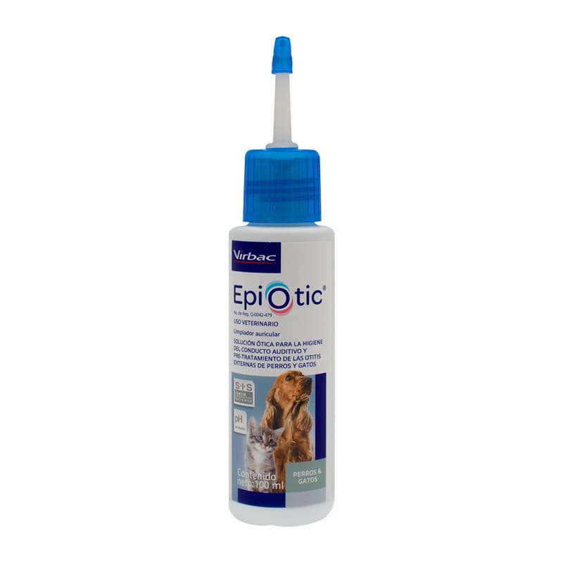 - EpiOtic es una solución antiséptica para limpieza del conducto auditivo externo de perros y gatos.