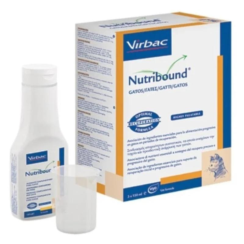 Nutribound. Fórmula líquida altamente palatable y lista para su uso que favorece al animal la ingesta de agua y comida. Proporciona los nutrientes esenciales especialmente recomendados como soporte al animal en los estadios más tempranos en condiciones de recuperación. No corresponde a un alimento completo. Sin agentes conservantes ni colorantes artificiales.